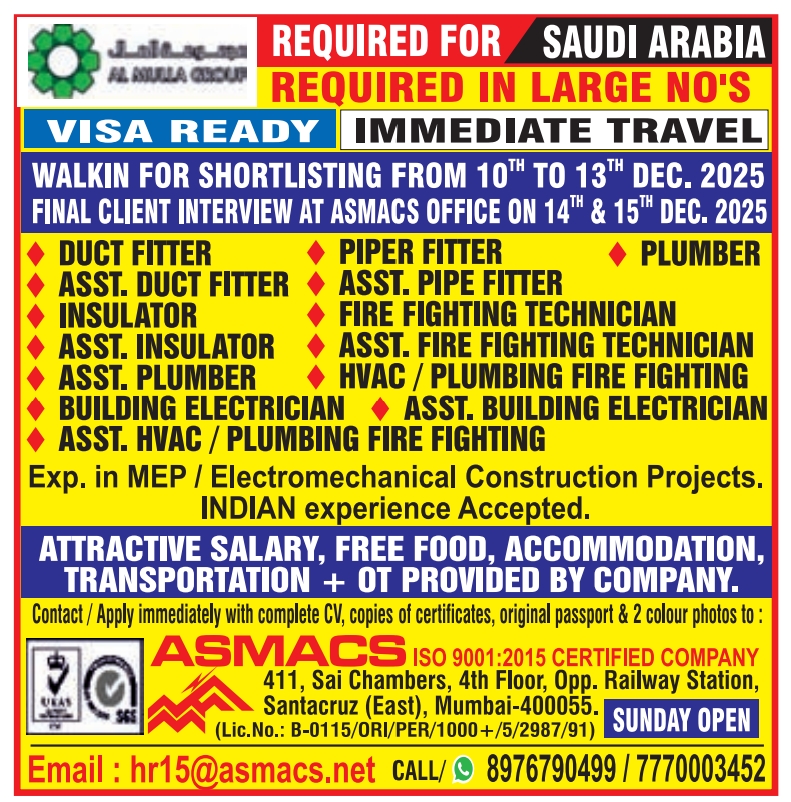 Gulf job vacancy free Requirement abroad jobs , Assignment abroad Times epaper today,