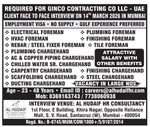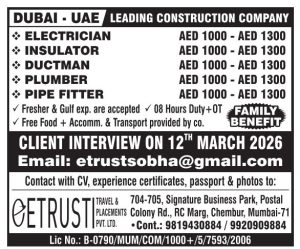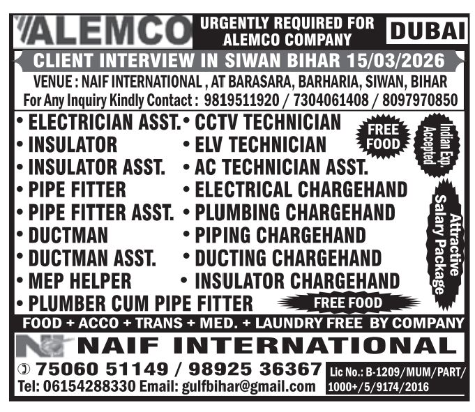 12.03.2026 Gulf Job vacancy, for Dubai, Qatar, Oman, Bahrain, kuwait, gulfjobindians March 11, 2026 admin Gulf Job Indians 0 Gulf job vacancy in Dubai Qatar Oman Bahrain kuwait Abu dhabi uae europe south africa act Download Assignment abroad TimesAssignment abroad Times epaperAssignment abroad Times epaper today download pdfAssignment abroad Times epaper whatsapp groupdailypromptGulf job consultancyGulf Job IndiansGulf job paperGulf job vacancy todayGulfjobindiansoverseas Assignment epaper today