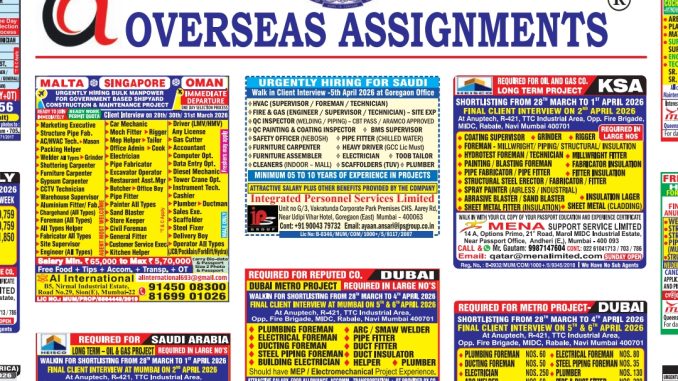 Overseas Assignment abroad Times epaper today download pdf